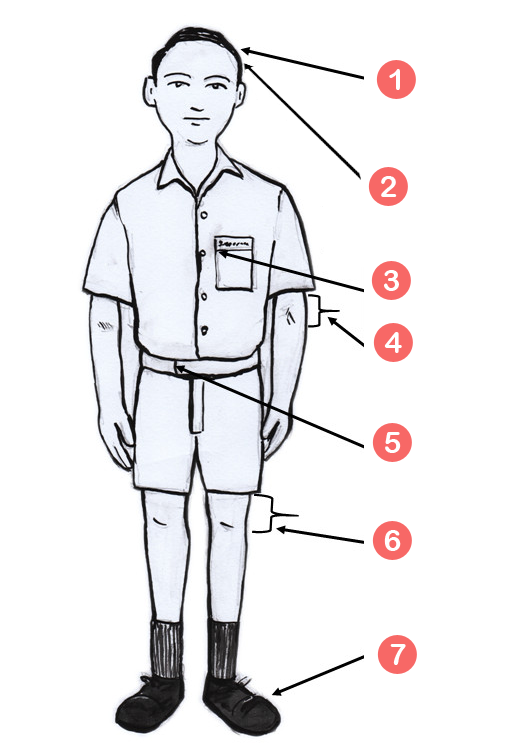 - පාසල් ලාංඡනය කමිසයේ වම් පස සාක්කුවේ කෙලවර පැළඳිය යුතුය.